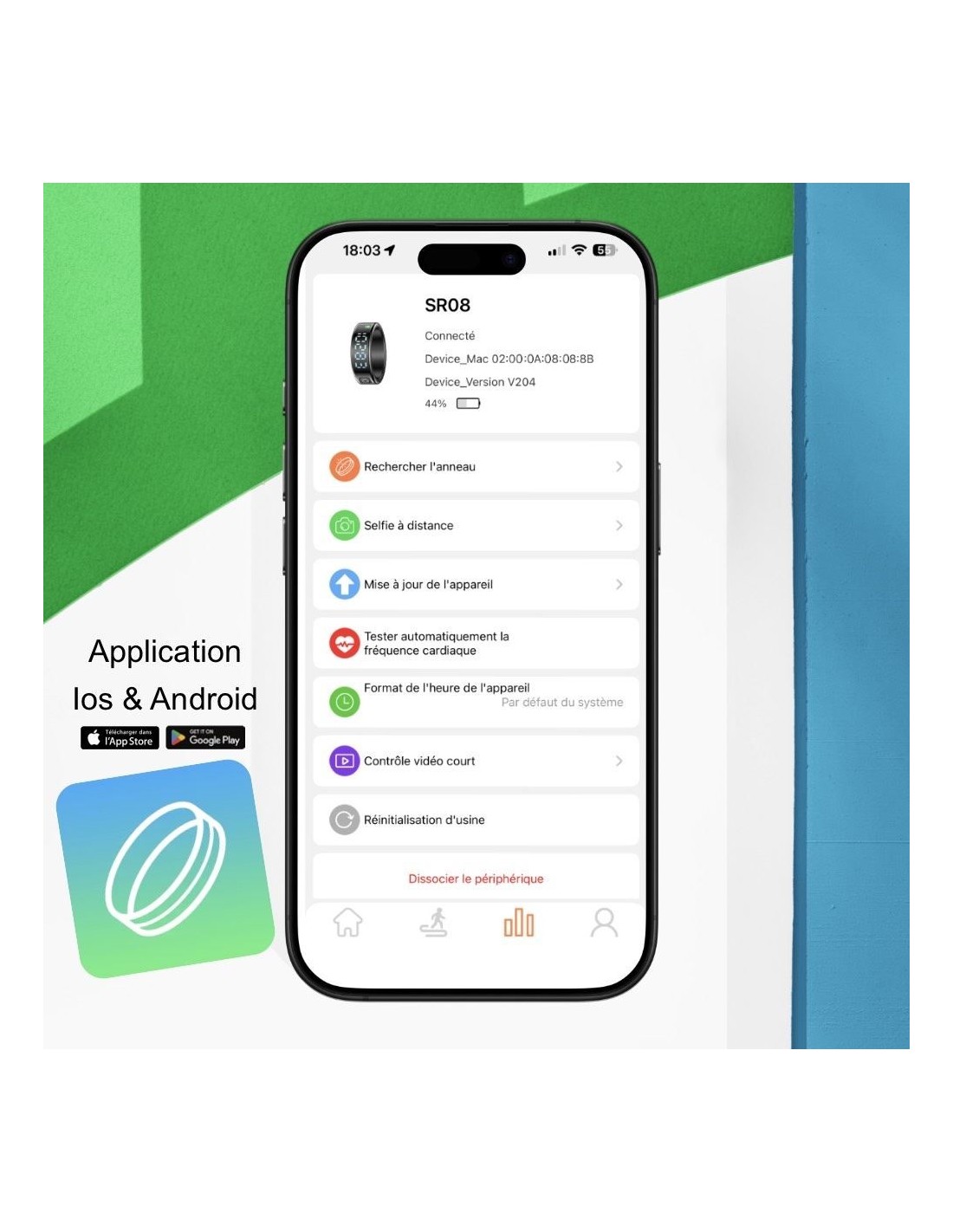 Application dédiée intuitive (JRing), synchronisation facile via Bluetooth