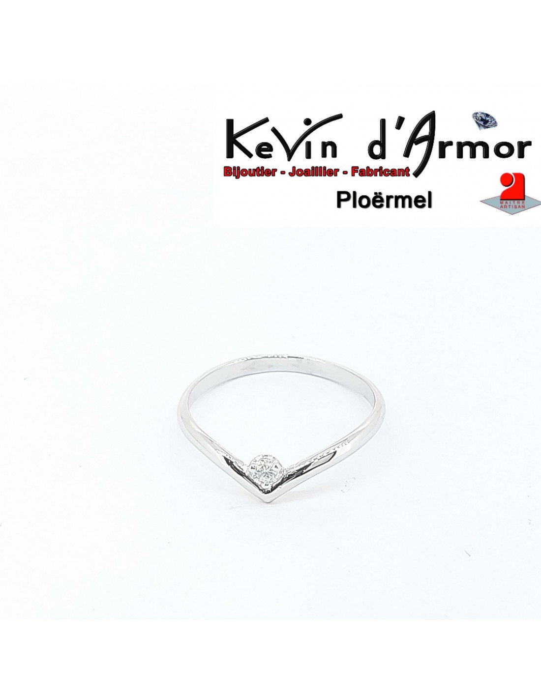 Alliant finesse et caractère, cette bague en or blanc palladié 750‰ se distingue par sa forme en V, élégamment soulignée par un diamant naturel de 2,5 mm (0,065 ct).