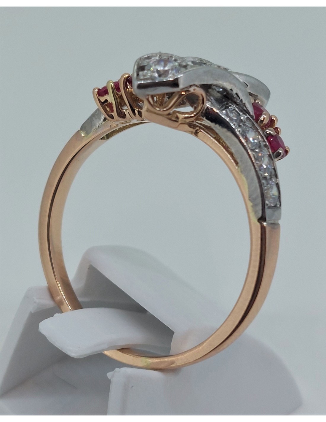 Confectionnée en or rose et blanc palladié 750‰, cette bague mêle la douceur chaleureuse du rose à la lumière éclatante du blanc pour un rendu tout en harmonie.