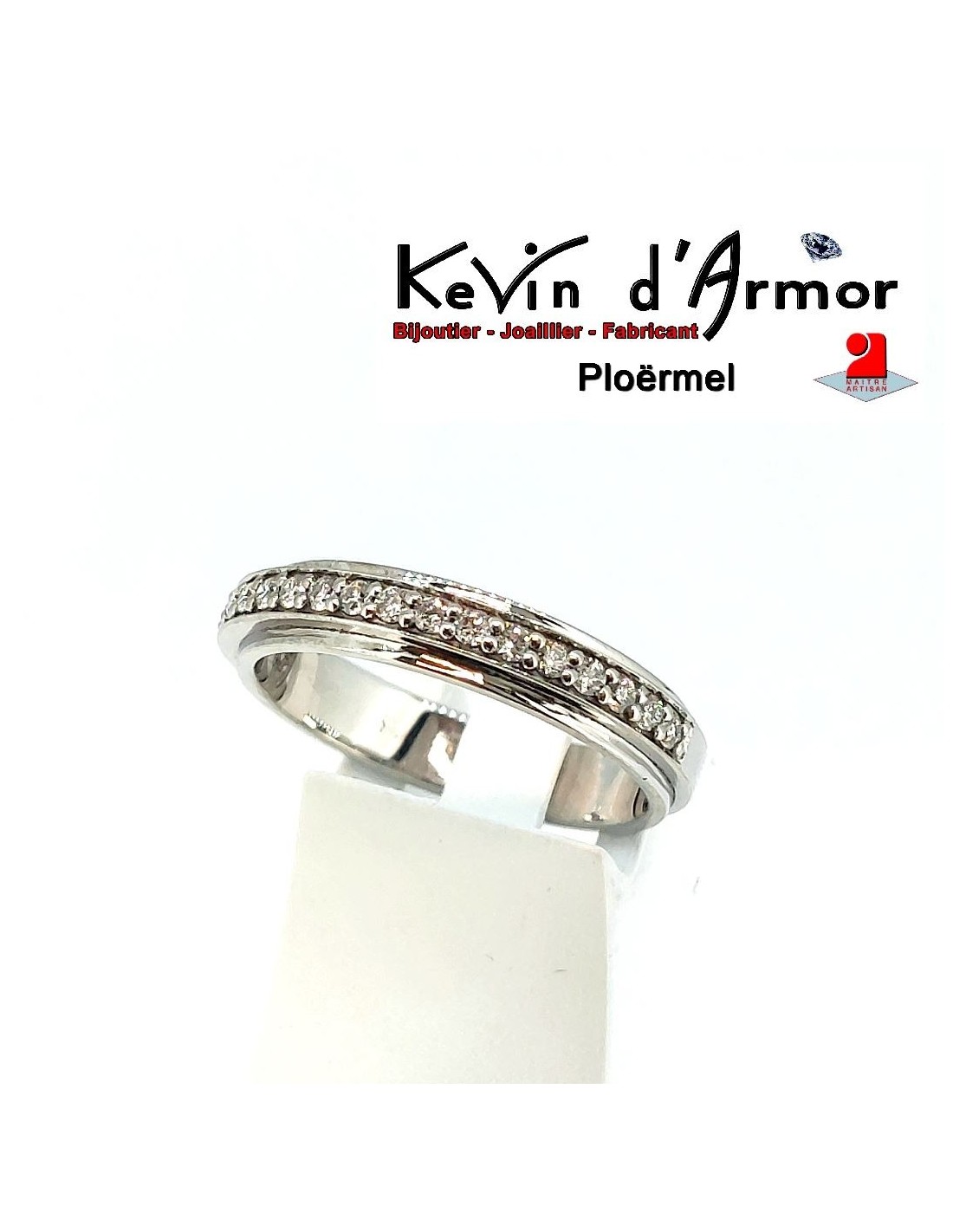 Élégante et lumineuse, cette demi-alliance en or blanc palladié 750‰ révèle toute la beauté du diamant avec subtilité.
