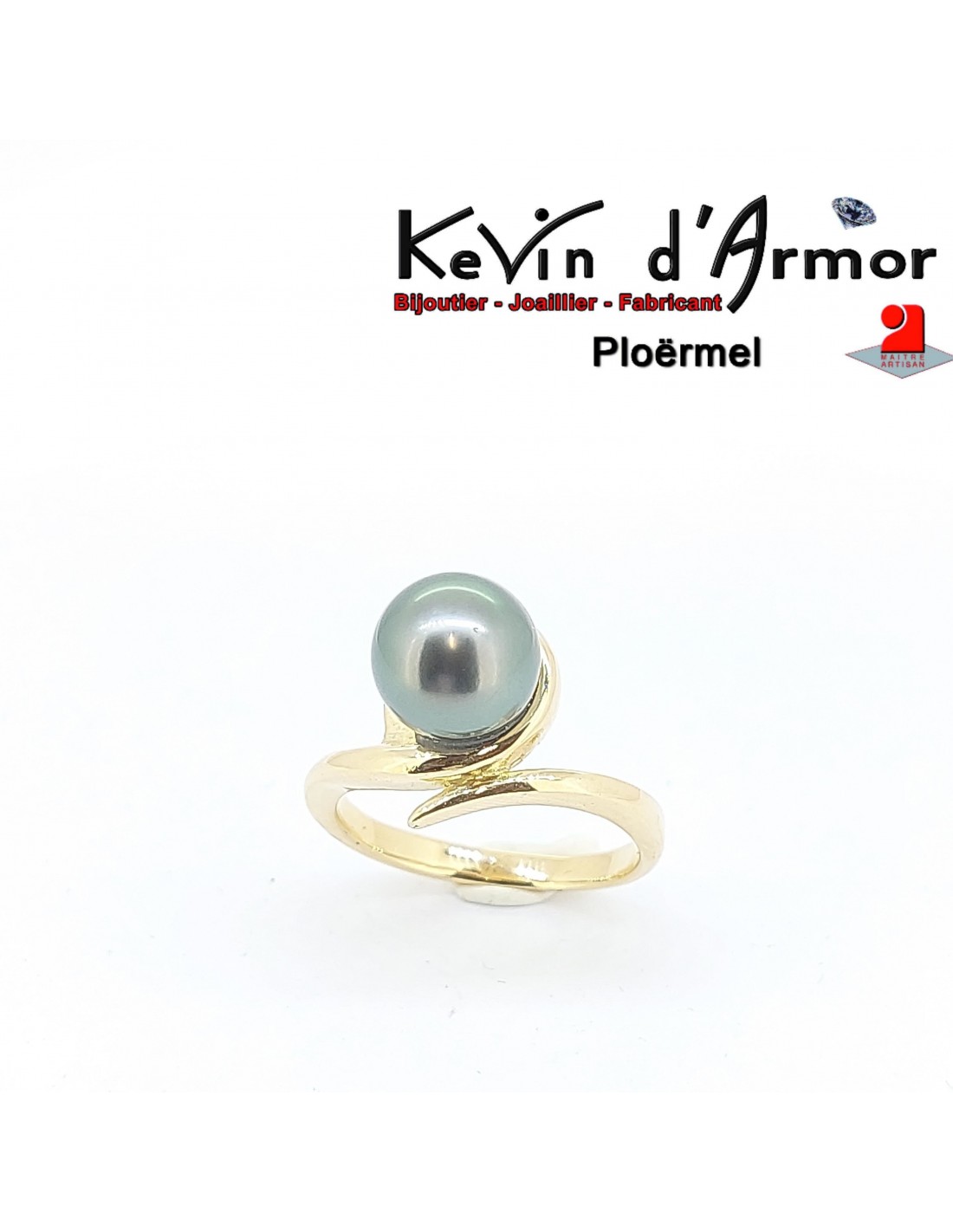 Élégance et exotisme s'unissent dans cette bague en or jaune 750°/°°, ornée d'une somptueuse perle de Tahiti de 9 mm.