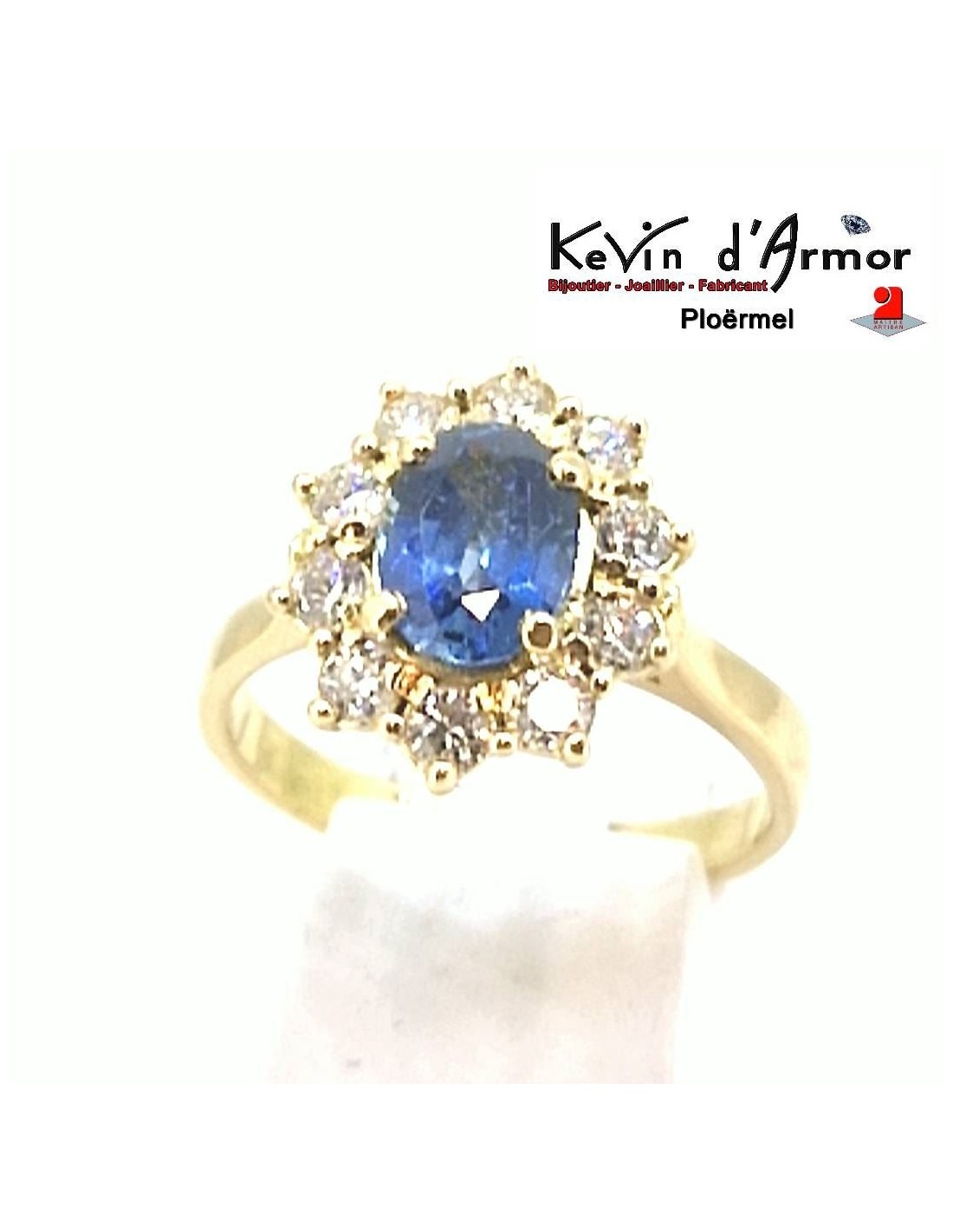 Les diamants naturels qui l'accompagnent subliment la monture de leur éclat pur, créant un contraste harmonieux entre la profondeur du bleu et la brillance du blanc.