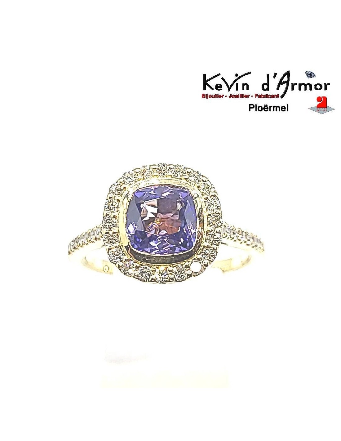 Alliance parfaite entre éclat et élégance intemporelle, cette bague met en valeur une tanzanite coussin de 7 mm, d'un bleu profond et lumineux.