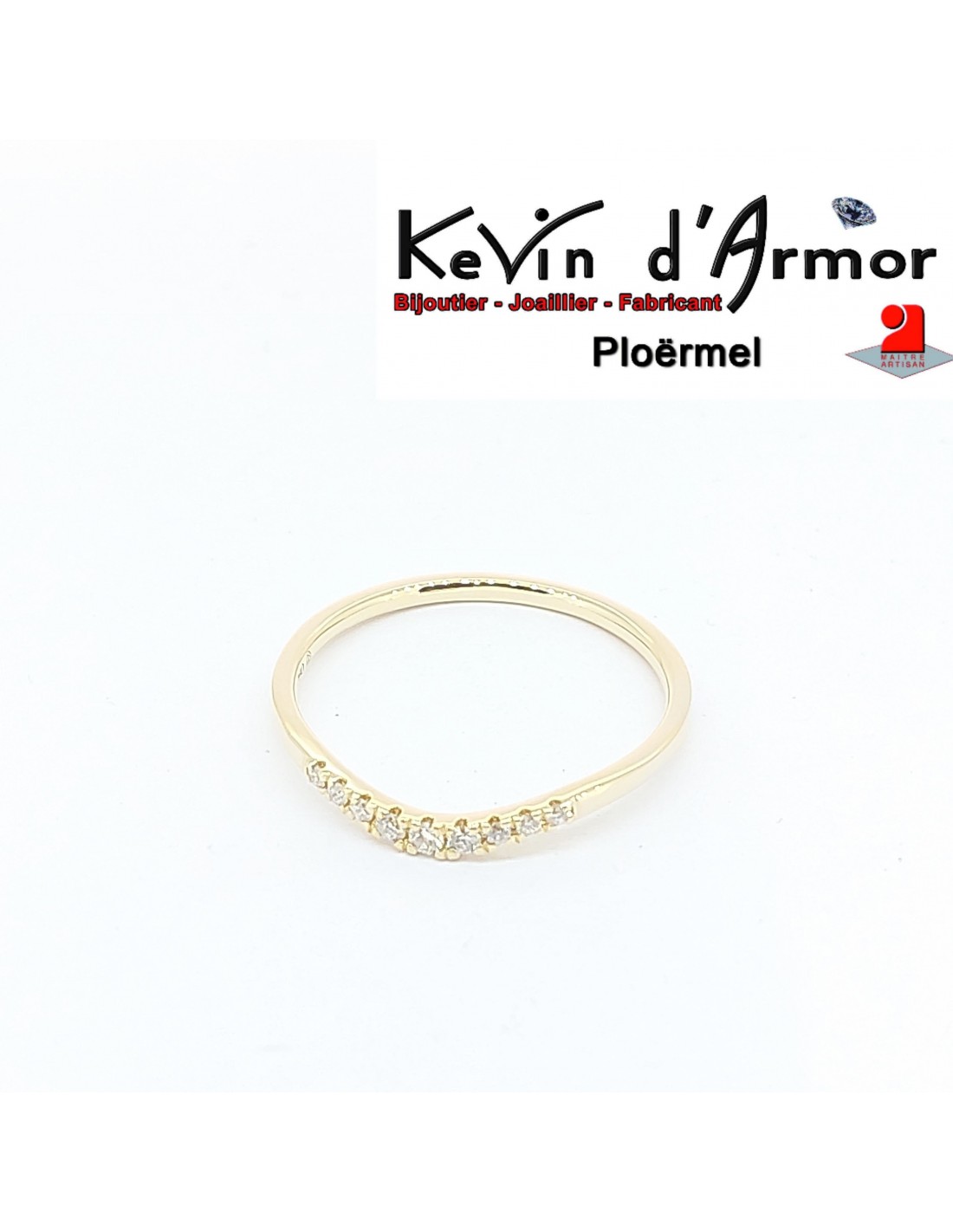 Cette superbe demi-alliance en or jaune 750‰ séduit par sa forme ondulée, à la fois moderne et délicate. Sertie de 9 diamants étincelants totalisant 0,09 carat, elle capte la lumière à chaque mouvement et symbolise l'harmonie et l'éternité.