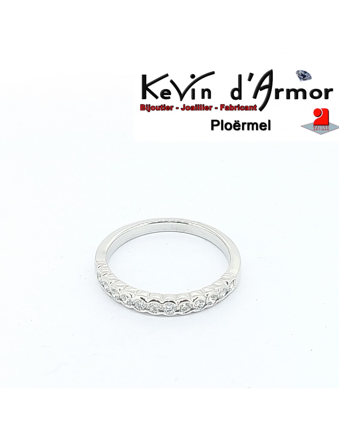 Élégante et intemporelle, cette demi-alliance en or blanc palladié 750‰ incarne la finesse et le raffinement de la joaillerie artisanale.