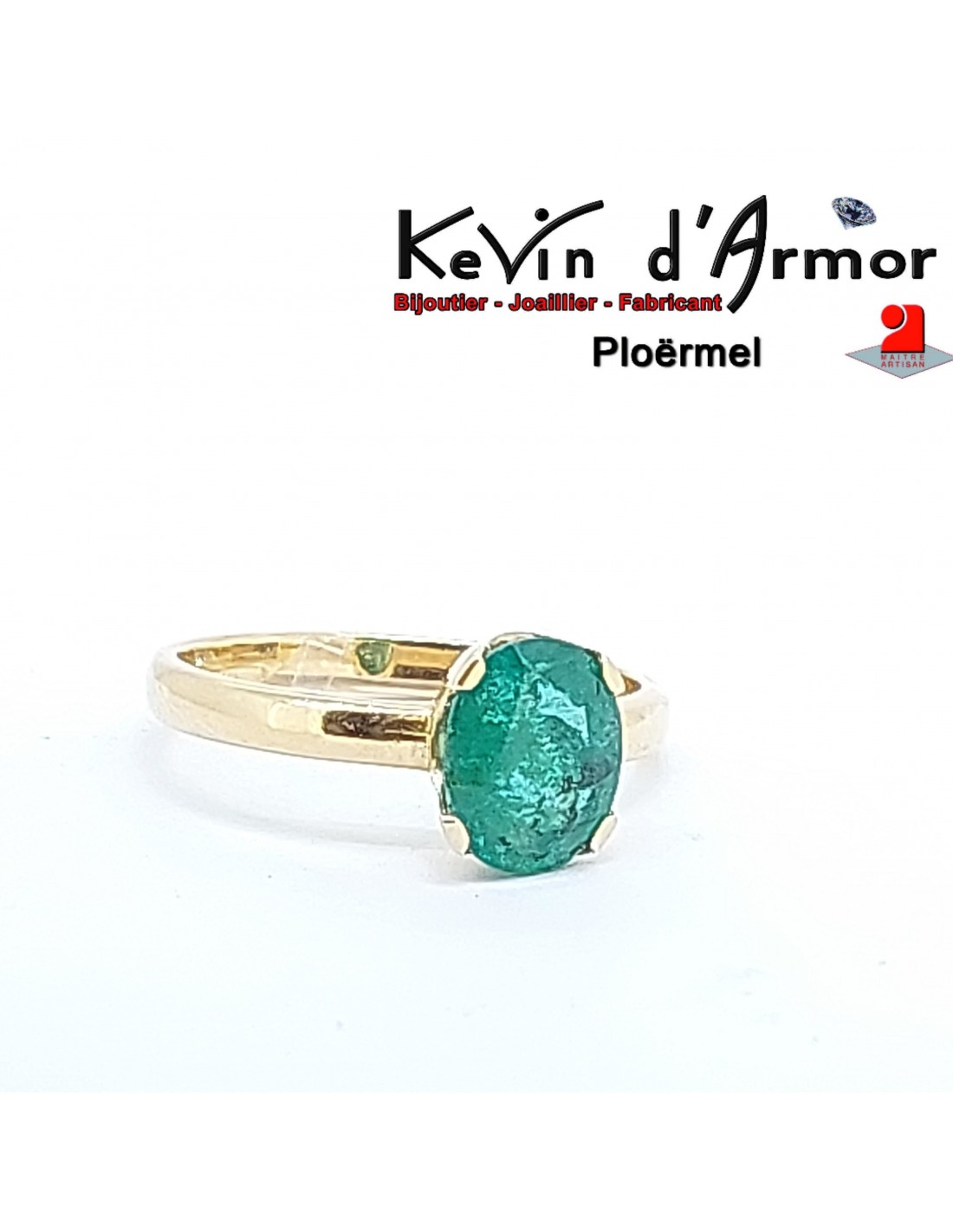 Sublimez votre style avec cette bague en or jaune 750‰, un classique de la joaillerie revisité avec éclat. En son centre trône une émeraude ovale de 1,47 ct (8,5 × 6,8 mm), majestueusement sertie par quatre griffes qui la laissent capter la lumière sous tous les angles. Sa couleur verte intense, symbole d'élégance et de renouveau, confère à cette création un charme irrésistible.