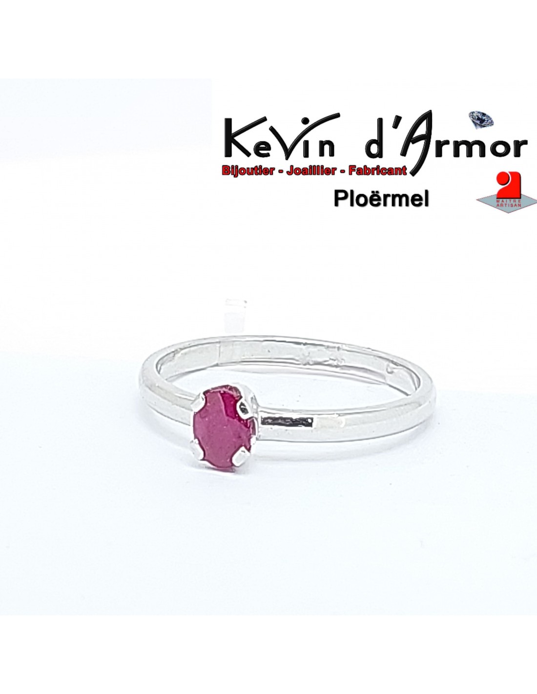 Élégante et intemporelle, cette bague en or blanc palladié 750°/°° met en valeur un rubis ovale traité de 5 x 4 mm, au rouge profond et lumineux, véritable centre d'attention.
