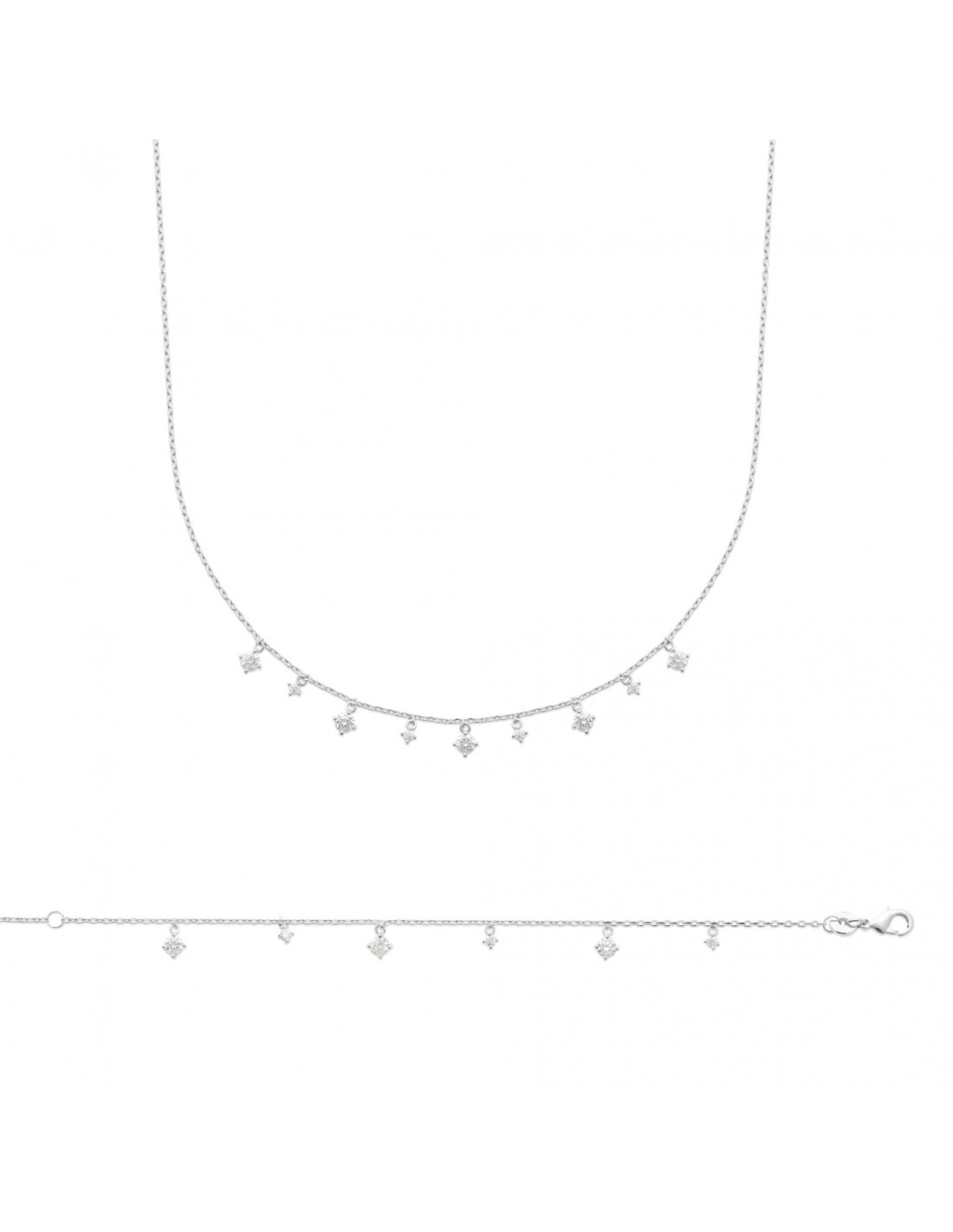 Chaine maille forçat diamantée, longueur 18 cm, ajustable à 16 cm