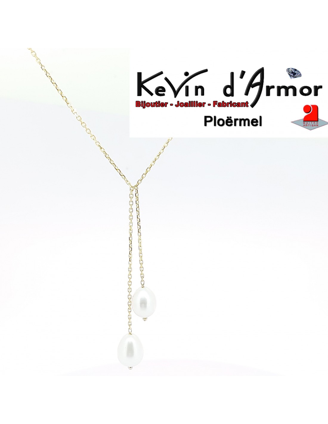 Long de 42 cm, il se termine par deux délicates perles d'eau douce blanches en forme de poire, apportant une touche de douceur et de raffinement.