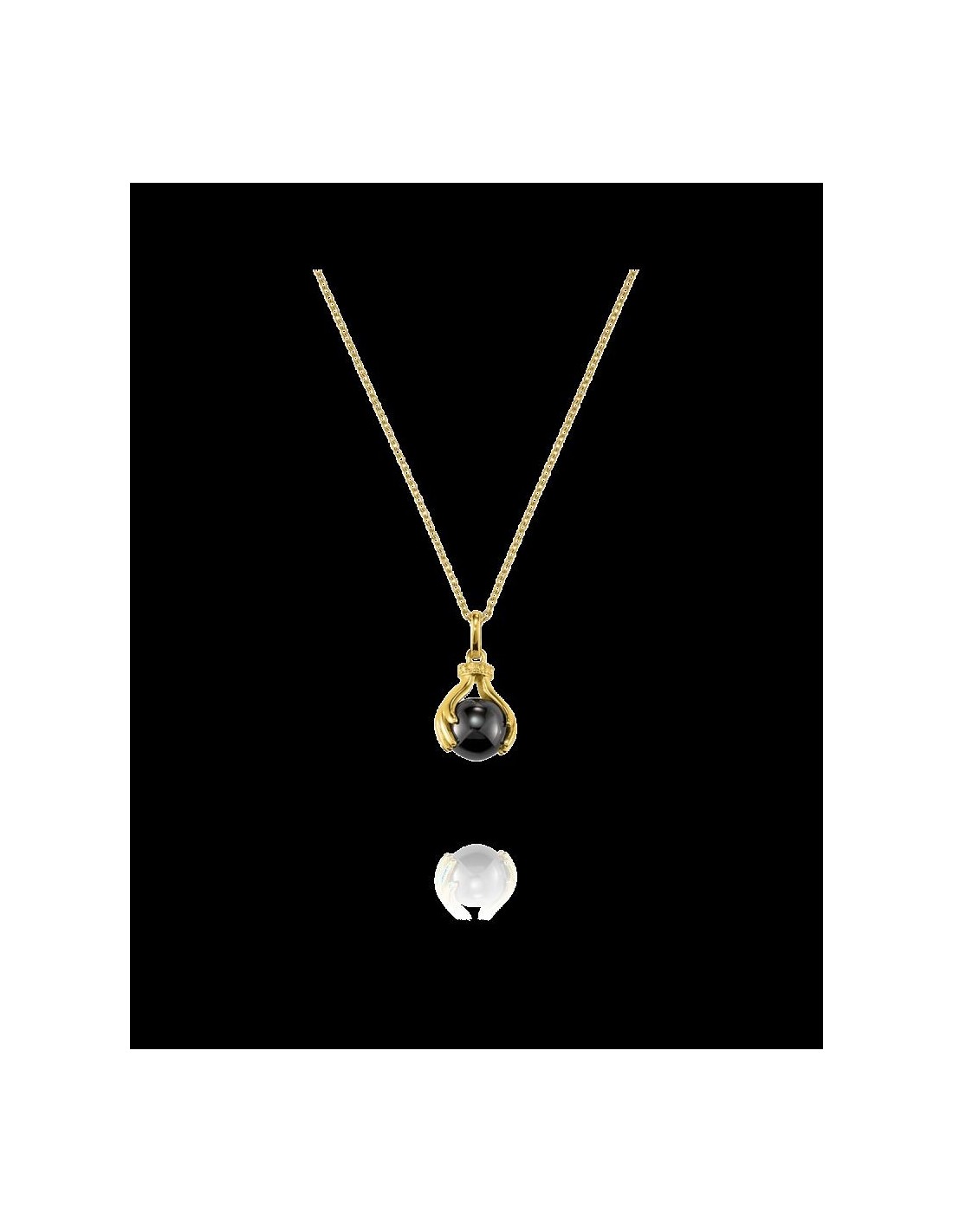 Collier argent doré, perle d'Hématite prise dans motif mains.