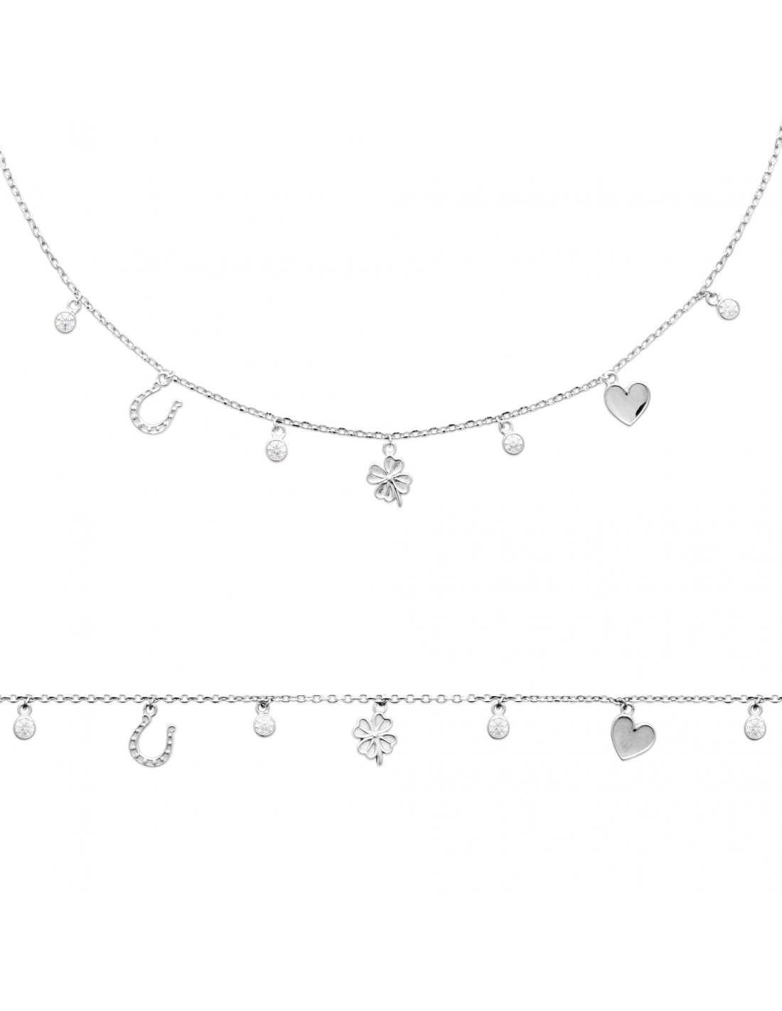 Chaine maille forçat diamantée, longueur 45 cm, ajustable à 38, 40 et 42 cm
